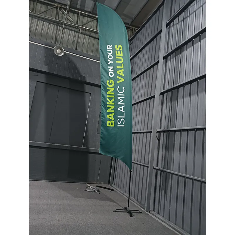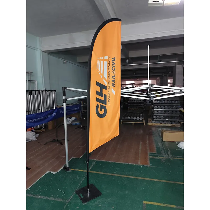 Feather beach flag na malawakang naaangkop sa mga malalaking event gaya ng mga marathon, triathlon, cycling race, at car rally, pati na rin ang mga commercial scenario gaya ng mga auto show, pagbubukas ng tindahan, aktibidad sa real estate, at mga promotional campaign.