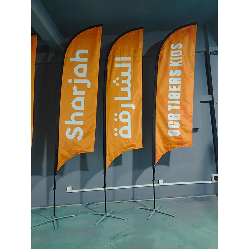 Ang feather beach flag, na kilala rin bilang plug-in beach flag, ay isang malawakang ginagamit na tool na pang-promosyon sa mga aktibidad sa labas. Ang advertising knife flag na ginawa ng Earth Display ay gumagamit ng plug-in na carbon fiber na flagpole na disenyo, na maginhawa para sa mabilis na pag-install at pag-disassembly. Ang mga ito ay magaan, lumalaban sa hangin, at nagtatampok ng mataas na mga pagpipilian sa pagpapasadya. Malawakang ginagamit ang mga ito sa mga marathon, auto show, opening ceremonies, at iba pang event.